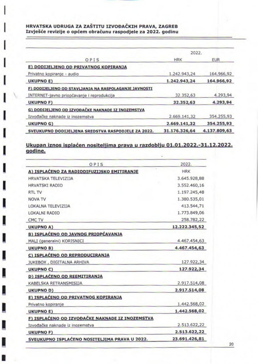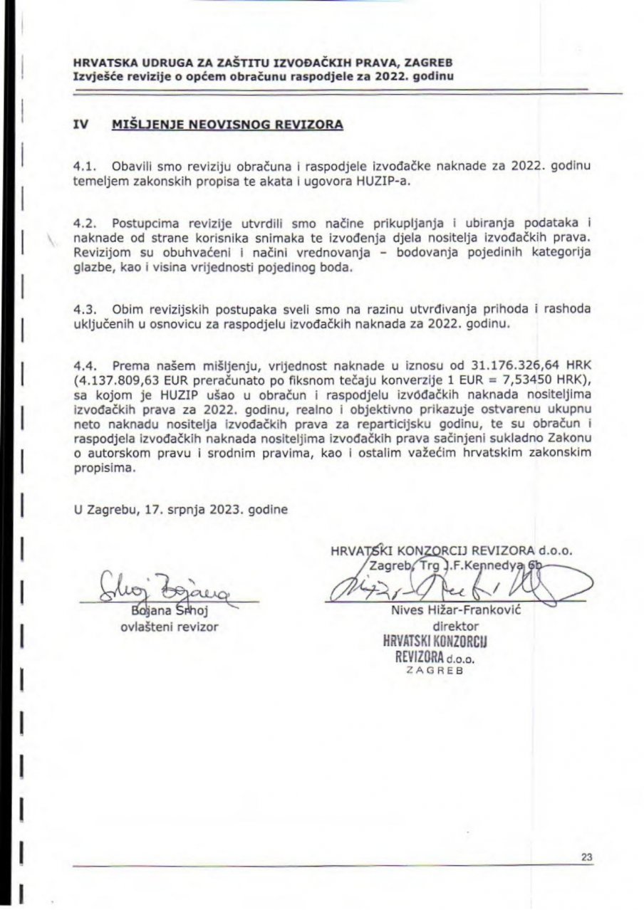 Izvješće revizije o općem obračunu raspodjele za 2022. godinu