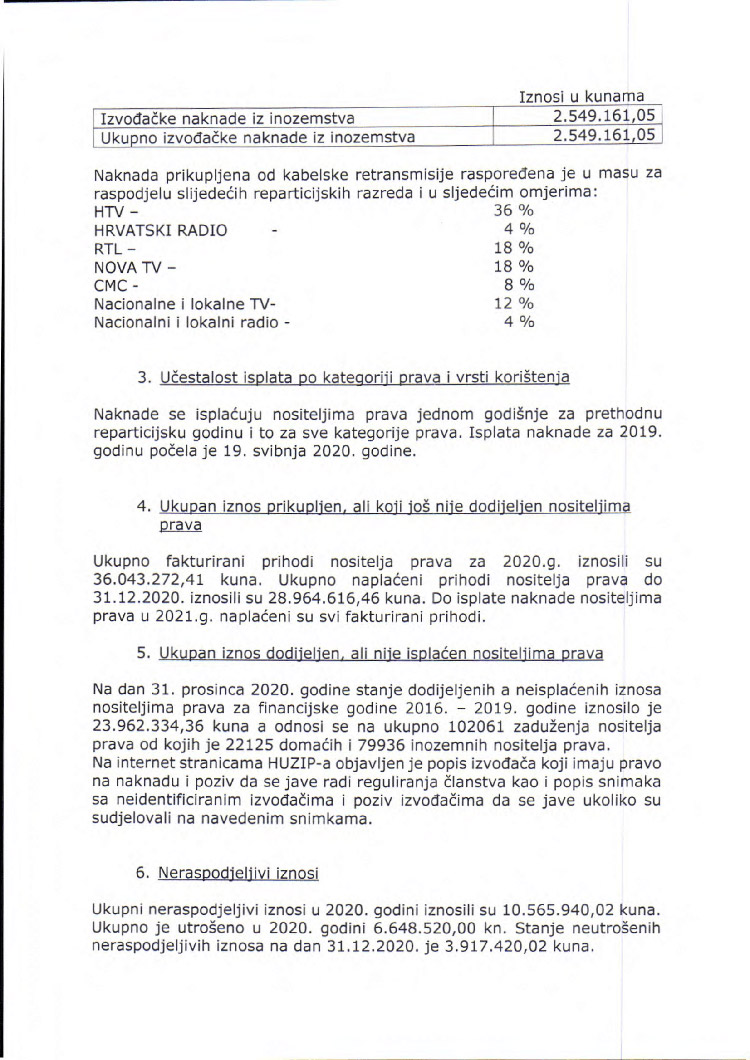 U skladu s člankom 168.d Zakona o autorskom pravu i srodnim pravima HUZIP objavljuje