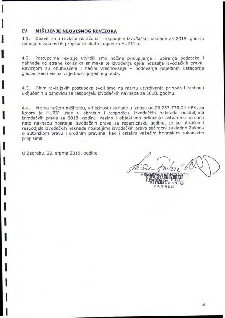 Izvješće revizije o općem obračunu raspodjele za 2018. godinu
