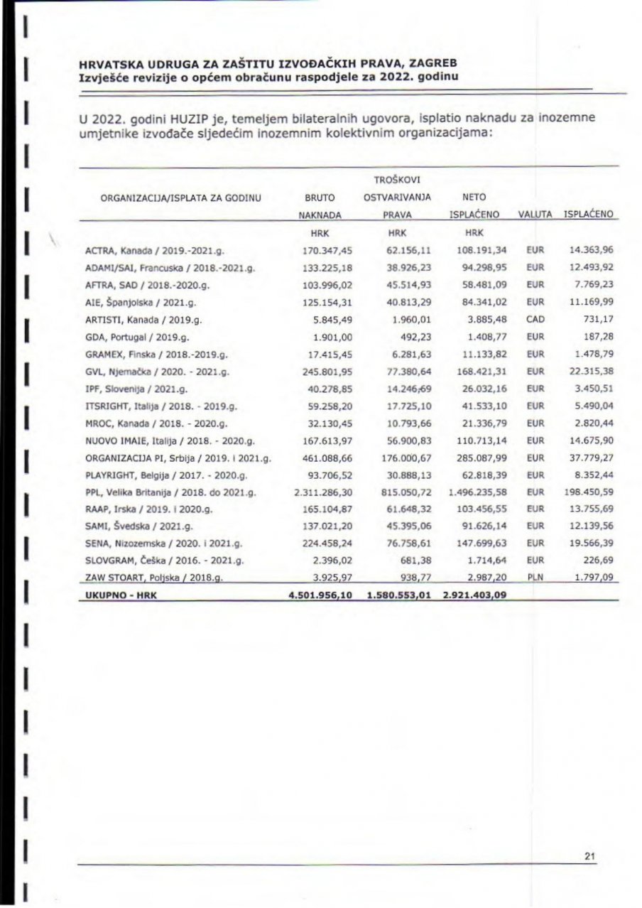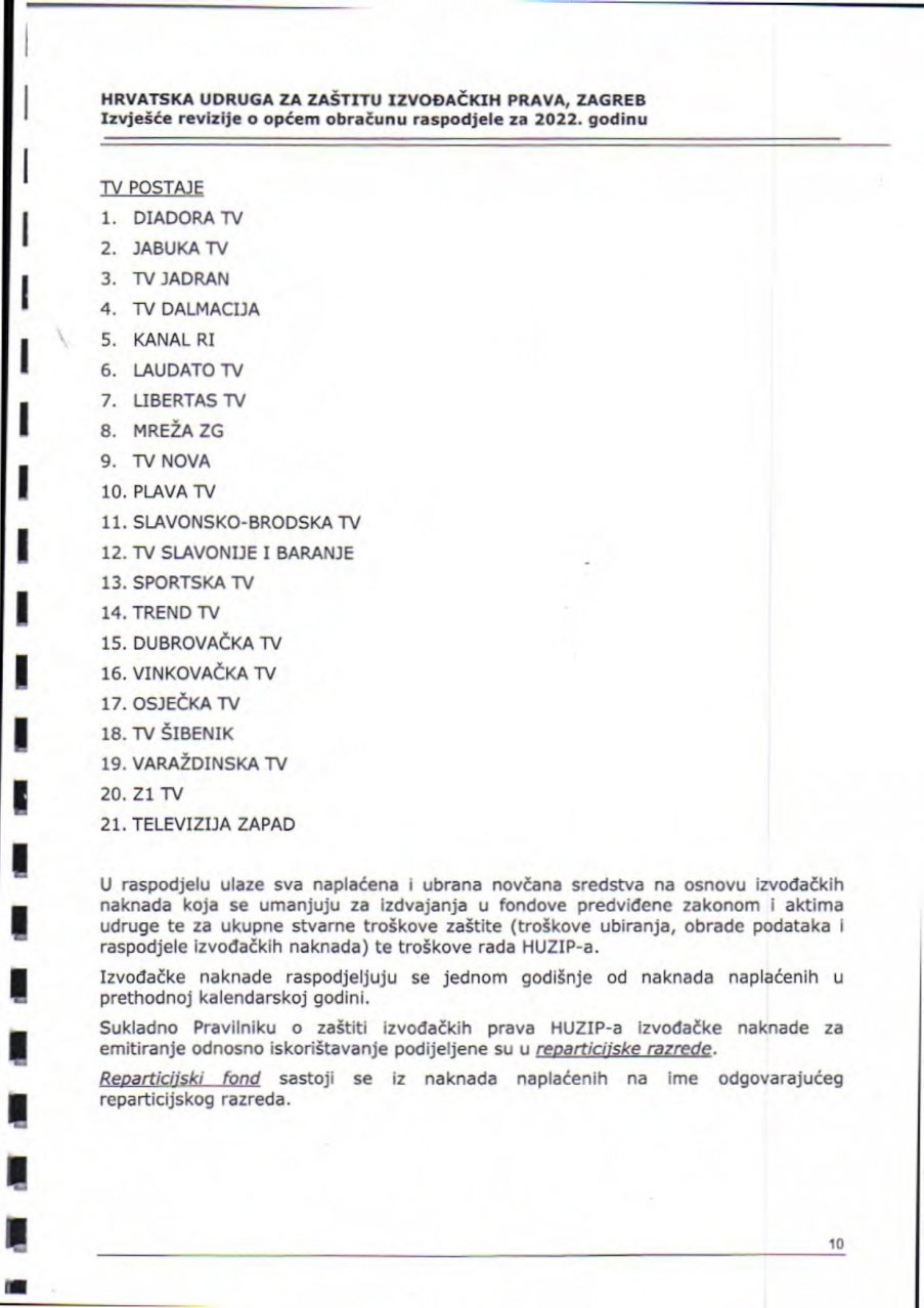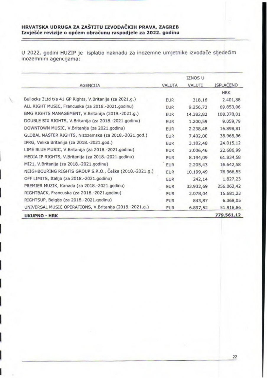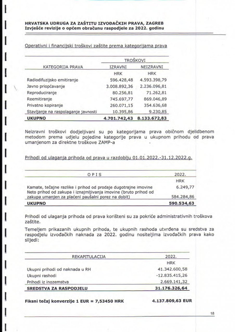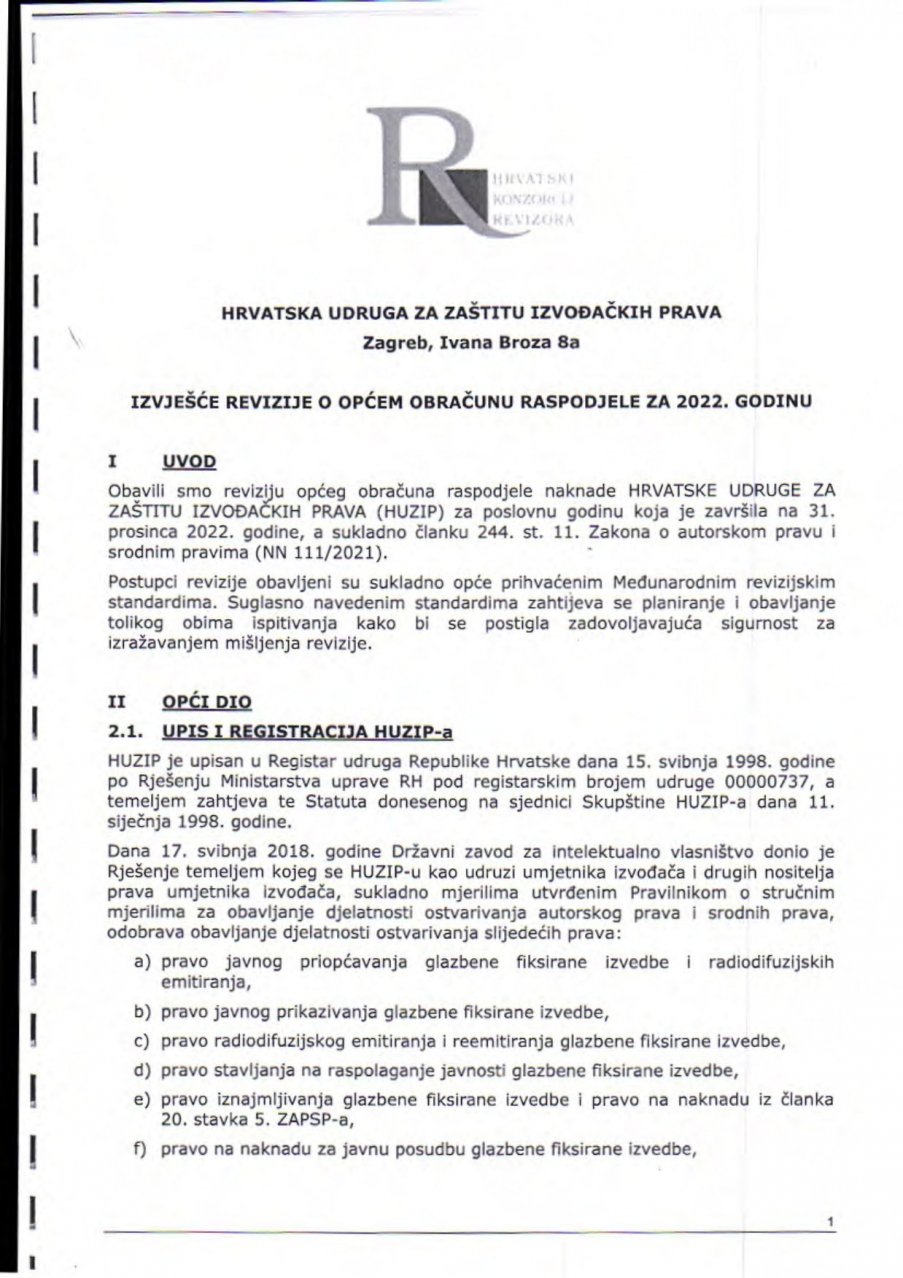 Izvješće revizije o općem obračunu raspodjele za 2022. godinu
